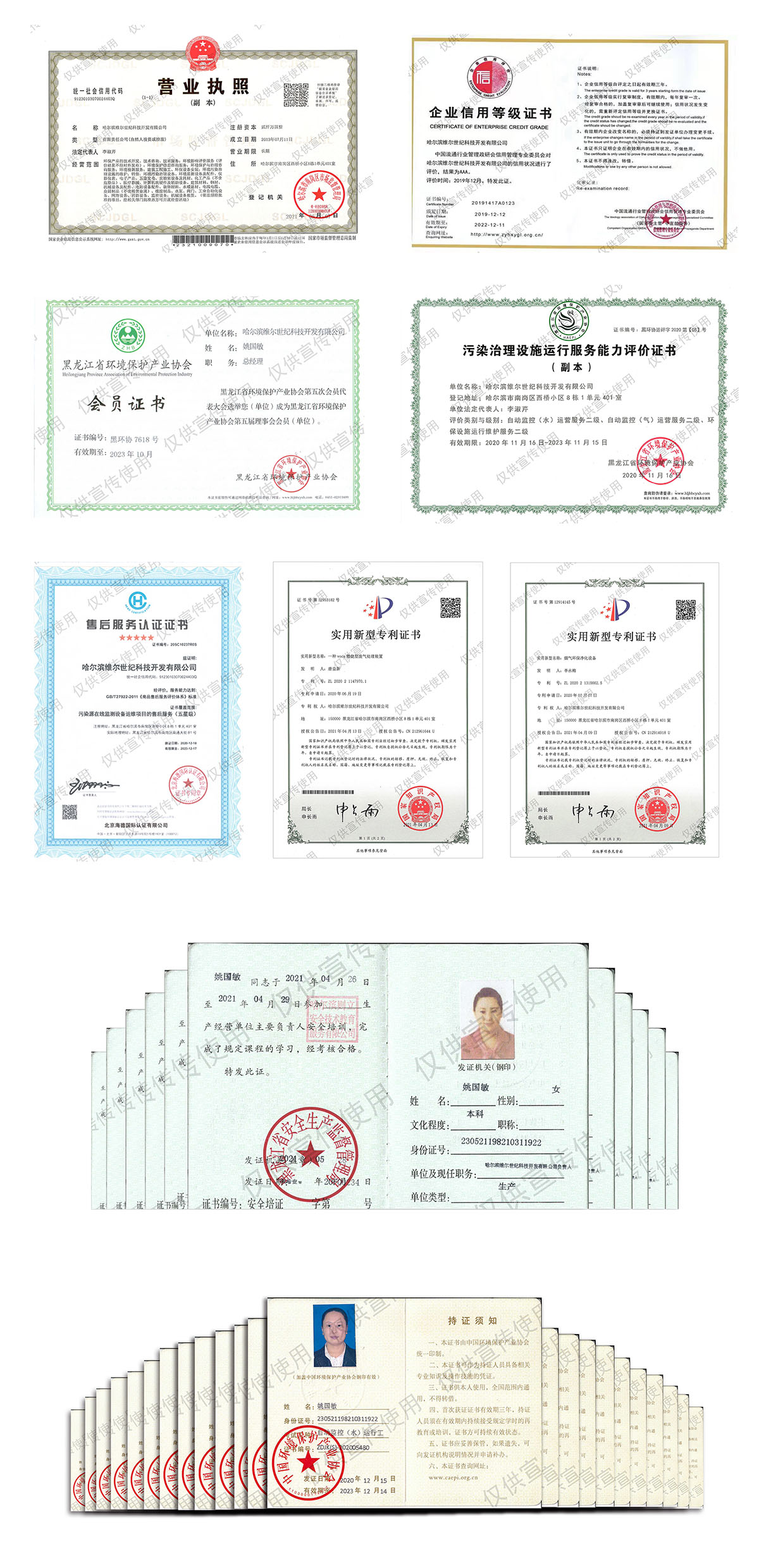 公司獲得污染治理設(shè)施運(yùn)行服務(wù)能力評(píng)價(jià)證書、售后服務(wù)認(rèn)證證書(五星級(jí))、企業(yè)信用等級(jí)證書(AAA)級(jí);被評(píng)為重點(diǎn)環(huán)保企業(yè)、納稅信用A級(jí)納稅人;是黑龍江省環(huán)保產(chǎn)業(yè)協(xié)會(huì)會(huì)員、華電集團(tuán)供應(yīng)商會(huì)員、華能集團(tuán)供應(yīng)商會(huì)員、大唐集團(tuán)供應(yīng)商會(huì)員、國(guó)家能源集團(tuán)供應(yīng)商會(huì)員、中國(guó)石油等企業(yè)供應(yīng)商會(huì)
